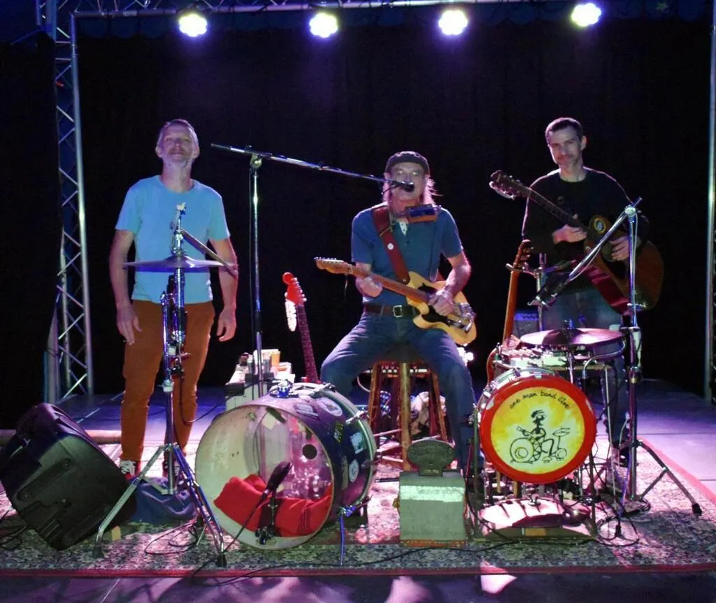 Samedi, l’homme-orchestre, Philippe Ménard, son « One man band » et ses douze albums, sous chapiteau, endiablait le public qui avait eu l’occasion de se restaurer avec notamment un cochon grillé. Guitare, chant, batterie aux pieds et harmonica en bandoulière à eux seuls faisaient battre le cœur des mélomanes les plus avertis.