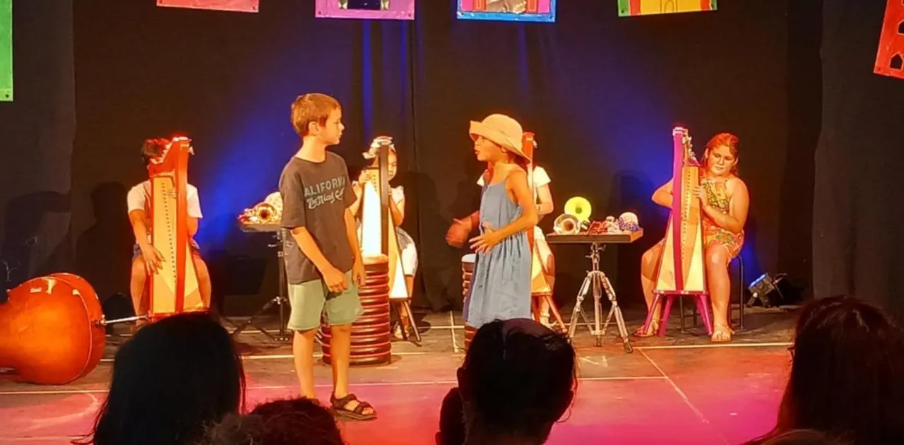 Ali Baba revisité par les jeunes artistes amateurs, accompagnés de jeunes musiciens qui découvraient pour la première fois la harpe pendant ce stage. © Ouest-France