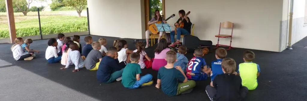 Pour la 7e année le service culturel de la communauté de communes Maine Saosnois a organisé une rentrée en musique par roulement dans les établissements scolaires du territoire. Cette année, ce sont les communes de Bonnétable, Courgains, Marolles-les-Braults, Saint-Rémy-des-Monts et Saint-Vincent-des-Prés soit près de 450 élèves qui ont la chance de bénéficier de ces petits concerts proposés par les enseignants de l’École de Musique et Danse Maine Saosnois. Mardi après-midi, Marie-Christine Montrésor et Muriel Leroux professeures de guitare ont ainsi présenté cinq morceaux de style très différent aux enfants du CP au CM2 du SIVOS de la Dive, elles en ont profité pour présenter techniquement leur instrument et répondre aux questions des élèves.