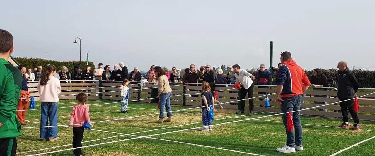 À cette occasion, un baby-foot humain géant a permis aux petits et grands de se réunir en toute convivialité. Cette nouvelle structure sportive permet la pratique de différentes activités sportives sur un terrain d’environ 22 mètres par 12, recouvert d’un gazon synthétique agrémenté de sables. Son coût est de 117 034 €, subventionné par l’Agence nationale des sports à hauteur de 32 000 €, une dotation d’équipement territoires ruraux pour un montant de 25 000 € et d’une subvention du Département pour un montant de 20 000 €.
