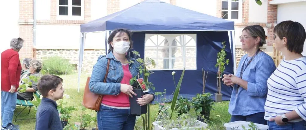 Ce samedi en après-midi, sous un beau soleil, l’Ehpad du village organisait une manifestation ouverte à tous avec un troc plants et une exposition au programme. © Ouest-France