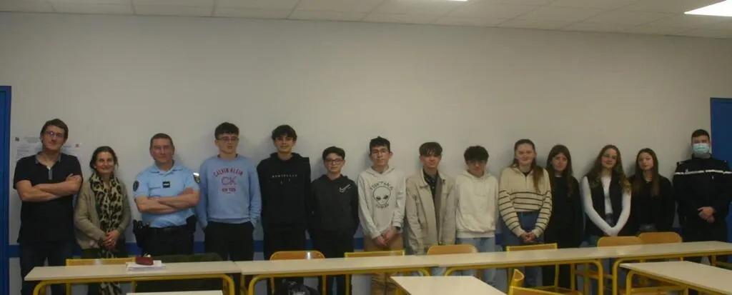 Mardi, la classe de défense du collège Jean-Cocteau de Sainte-Jamme-sur-Sarthe, dans le cadre de sa formation, découvrait la gendarmerie nationale. Les élèves et leurs professeurs Laurent Soudée, et Bérengère Bruneau en présence de Dominique Sommier, ont accueilli l’adjudant-chef William Charrière et le brigadier Lucas Verquerre, de la brigade territoriale de gendarmerie de Ballon.