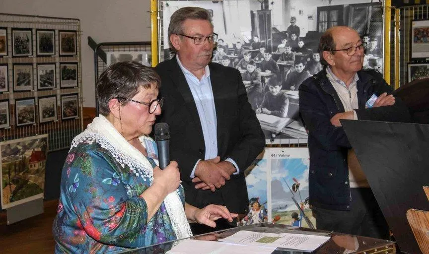 Laurence Beaury, présidente, Jean-Luc Suhard, maire et Bernard Houel, mémoire de l’association, lors de la dernière exposition. © Le Maine Libre