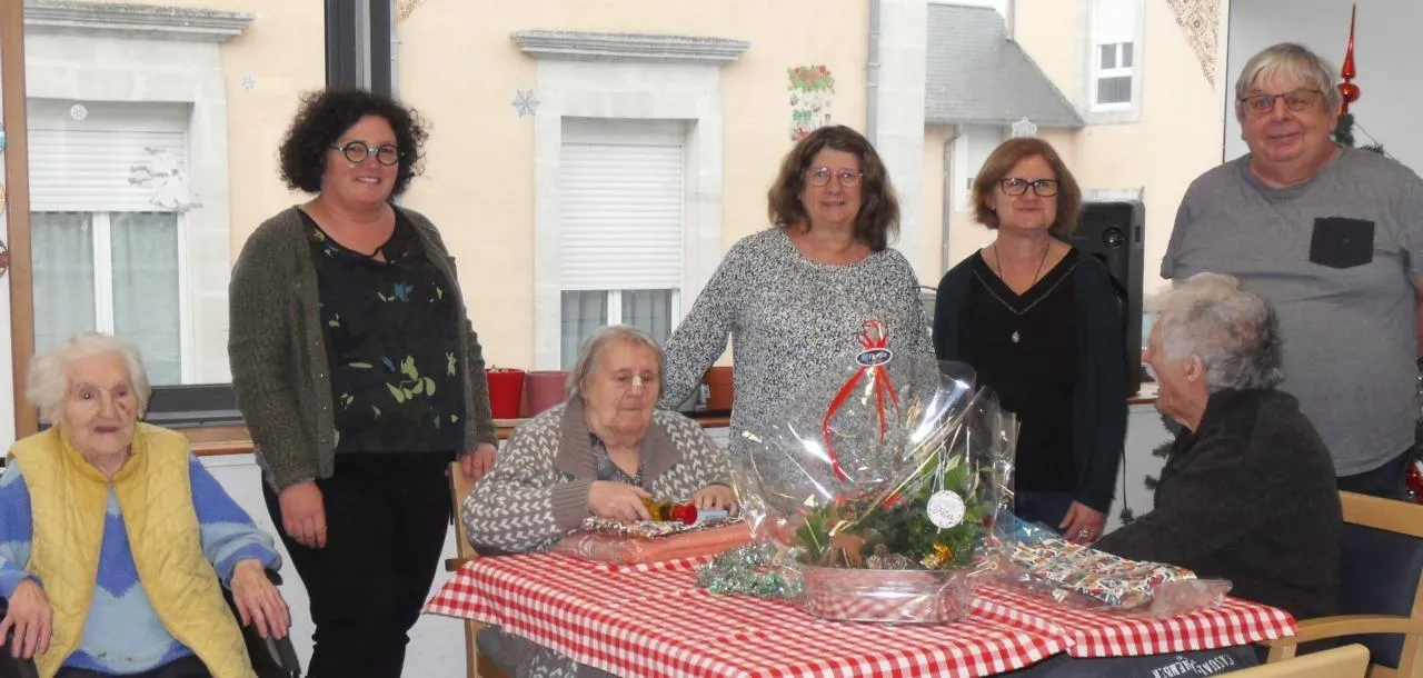 Mme Lachambre et des résidentes entourées par les membres du CCAS © Le Maine Libre