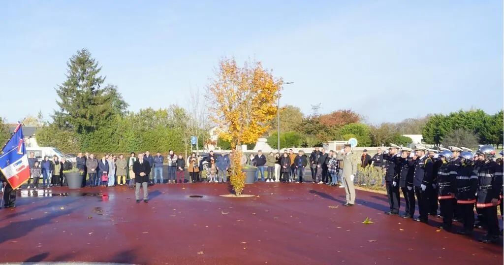 Après l’inauguration, fin septembre, à côté du parc manceau, avec une grande esplanade, le monument aux morts recevait ses premiers hommages officiels samedi pour la cérémonie du 11 Novembre. Toutes les forces de l’État étaient présentes ainsi que les écoles et les villageois venus en nombre pour l’occasion. © Ouest-France