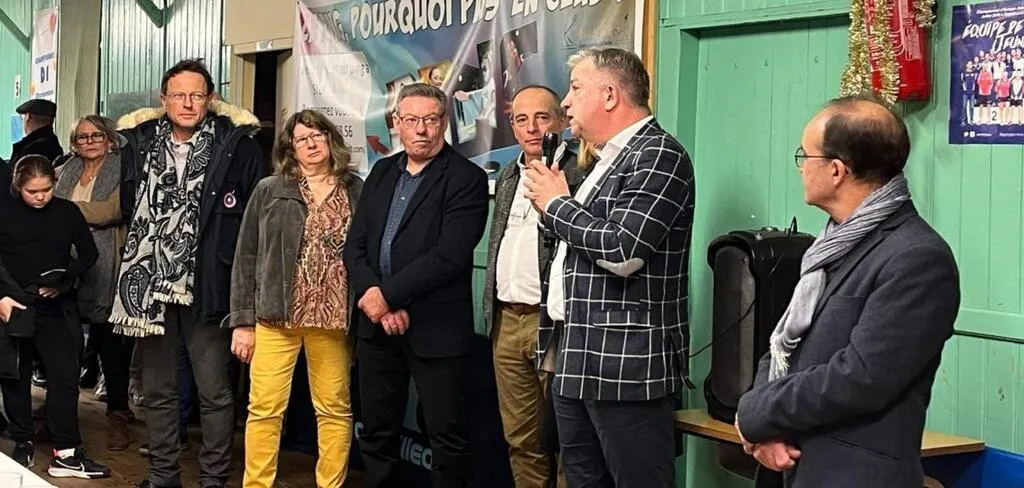 Lors de la cérémonie des vÅ“ux au club de tennis de table, avec Eric Bourge vice-président de la CDC Maine CÅ“ur de Sarthe (au micro). © Le Maine Libre