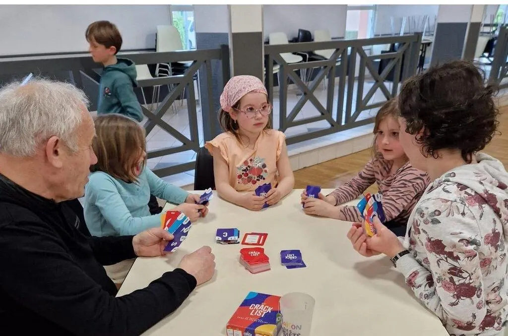 Tous les participants, jeunes et moins jeunes, ont cuisiné un goûter d’antan ensemble, pour ensuite partager un goûter avec des madeleines et des quatre-quarts. L’après-midi s’est poursuivie par un moment d’échange autour des jeux de société. Les plus anciens ont pu se rappeler leurs souvenirs d’enfance, mais également apprendre les règles aux plus jeunes des jeux de leur enfance comme les dominos ou les échecs, et les plus petits se sont amusés à partager des parties d’Uno ou de Skyjo avec les plus anciens.
