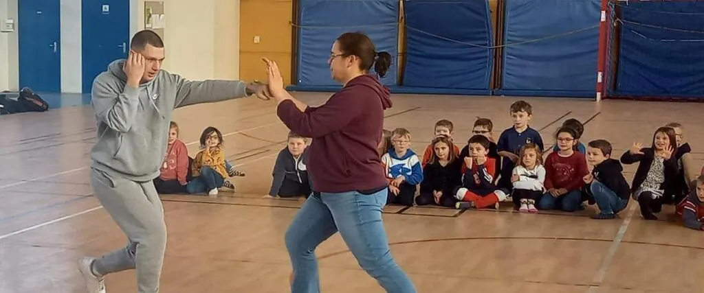 Une enseignante affronte Briac Mercier, vice-champion du monde de karaté contact. © Le Maine Libre