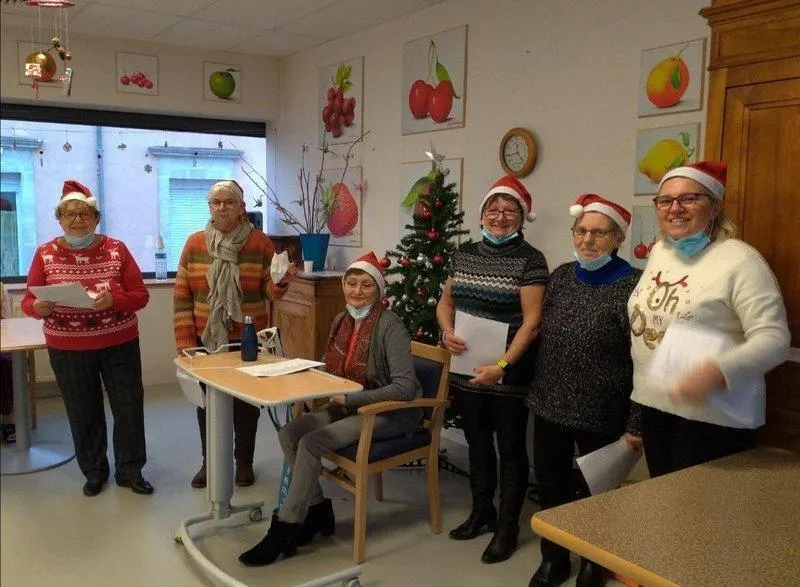 Une partie des chanteuses à l’Ehpad, pour le plus grand plaisir des résidents. © Le Maine Libre