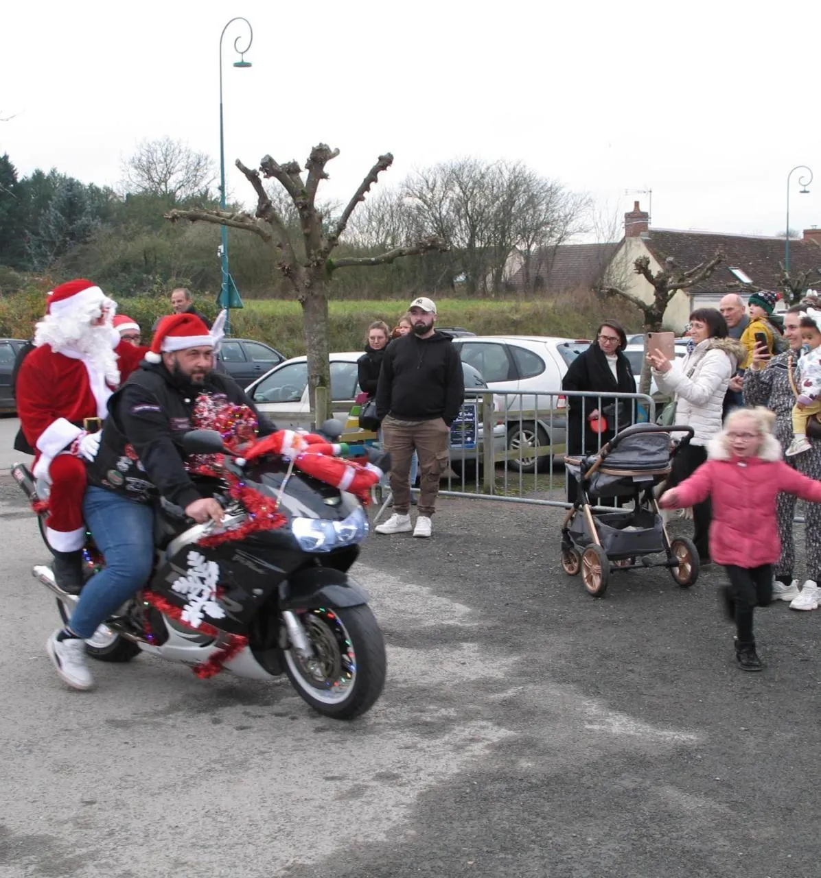 Sainte-Sabine-sur-Longève. Le père Noël est arrivé à moto... |