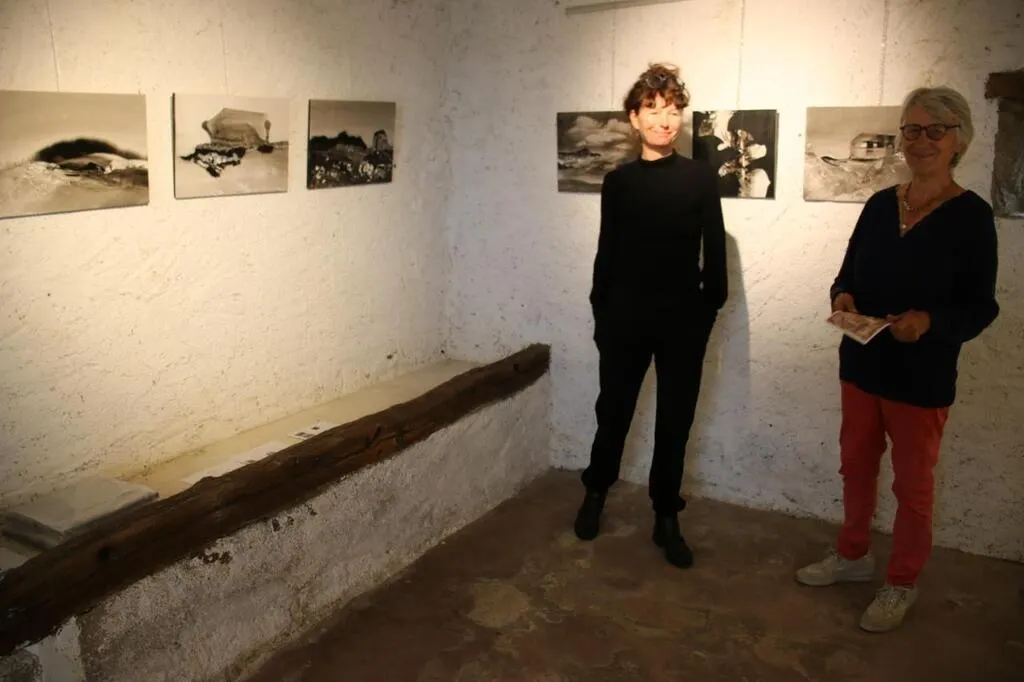 Camille Couturier, à gauche, a exposé ses œuvres pendant les deux mois de juillet et août. © Le Maine Libre