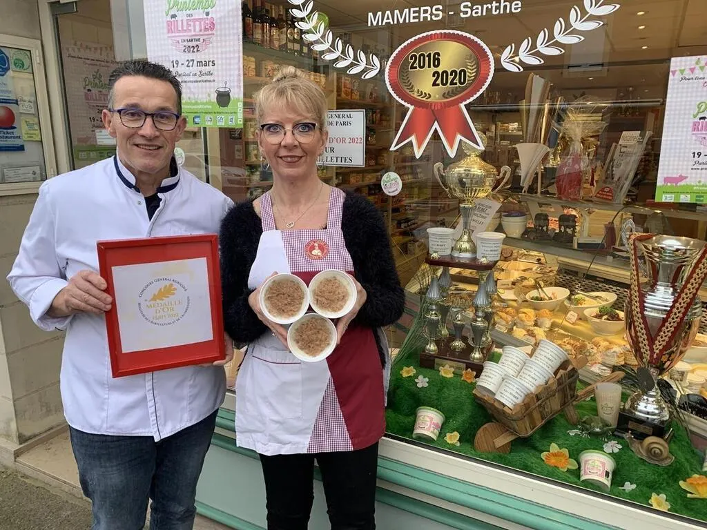 La charcuterie Buret est déjà multimédaillée au concours national des meilleures rillettes qui se déroule chaque année à Mamers, à quelques kilomètres d’où le couple travaille.
