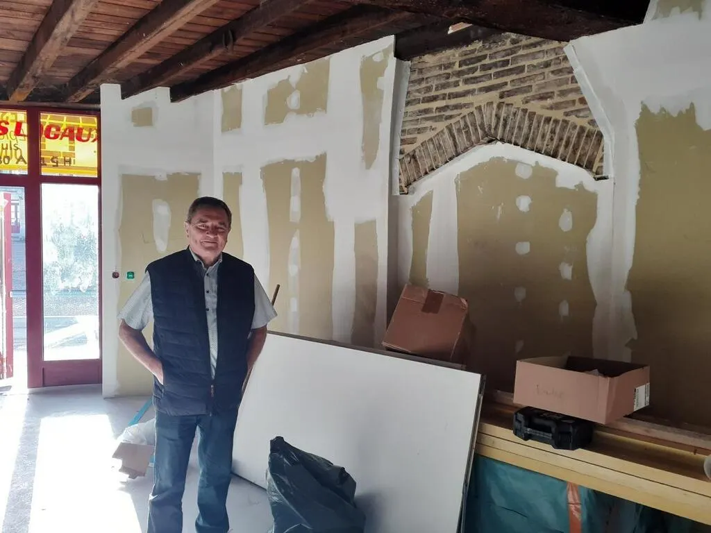 Jean-Yves Denis, maire de Crosmières, devant ce qui reste de l’ancienne forge. Le local deviendra une épicerie bistrot coopérative en mars 2023. © Maine Libre