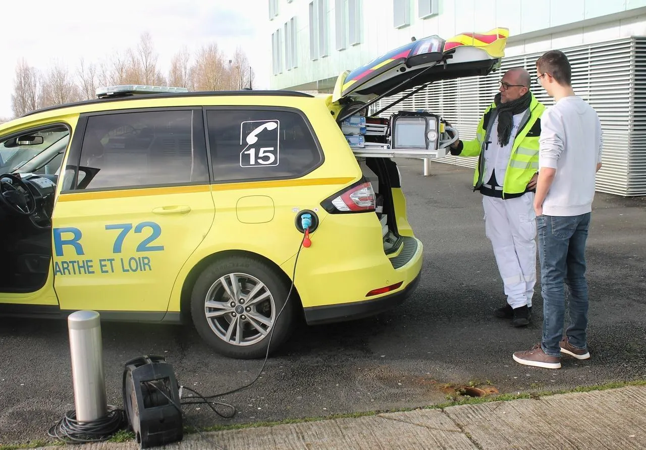 Un véhicule du Smur 72 utilisé par les équipes paramédicales mobiles d’urgence était aussi présenté devant l’hôpital. © Ouest-France
