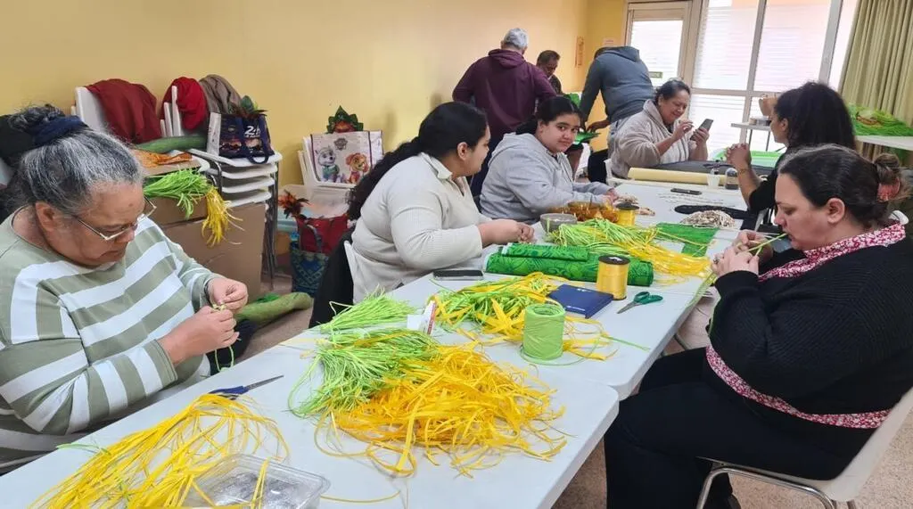 Préparation des « ii », sortes de pompons en raphia pour les danses. © Ouest-France