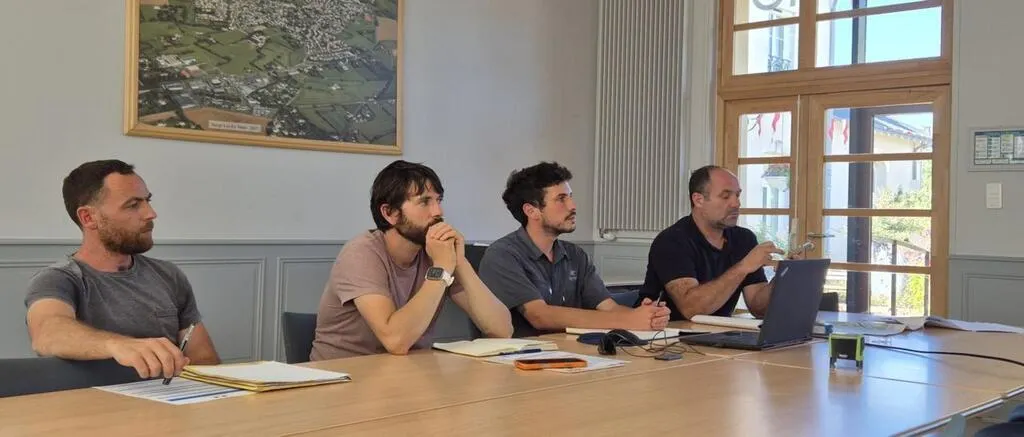 Une réunion de travail s’est poursuivie avec les conseillers; Gérard Beaujeu, président du CDRS72 (comité départemental roller et skate); Didier Edon pratiquant le surf skate, et les sociétés Hepure, spécialisée dans la maîtrise d’œuvre, Atelier 360, dans la conception d’aire de glisse, et Htrack, dans la conception de pump track.