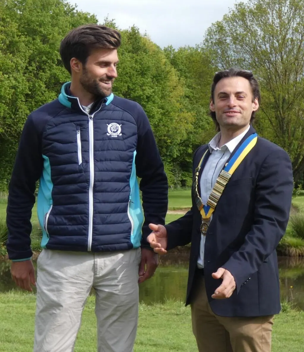 Vladimir Miraton, directeur Le Mans golf club de Sargé et Thomas Martineau, président du Rotary Le Mans Bérengère. © Le Maine Libre.