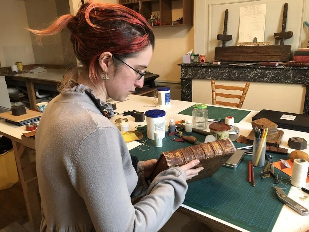 Marina Villenave propose de relier et de restaurer des livres anciens dans son atelier le Scribe des bois à Montmirail (Sarthe). Celui-ci est ouvert depuis 2021.