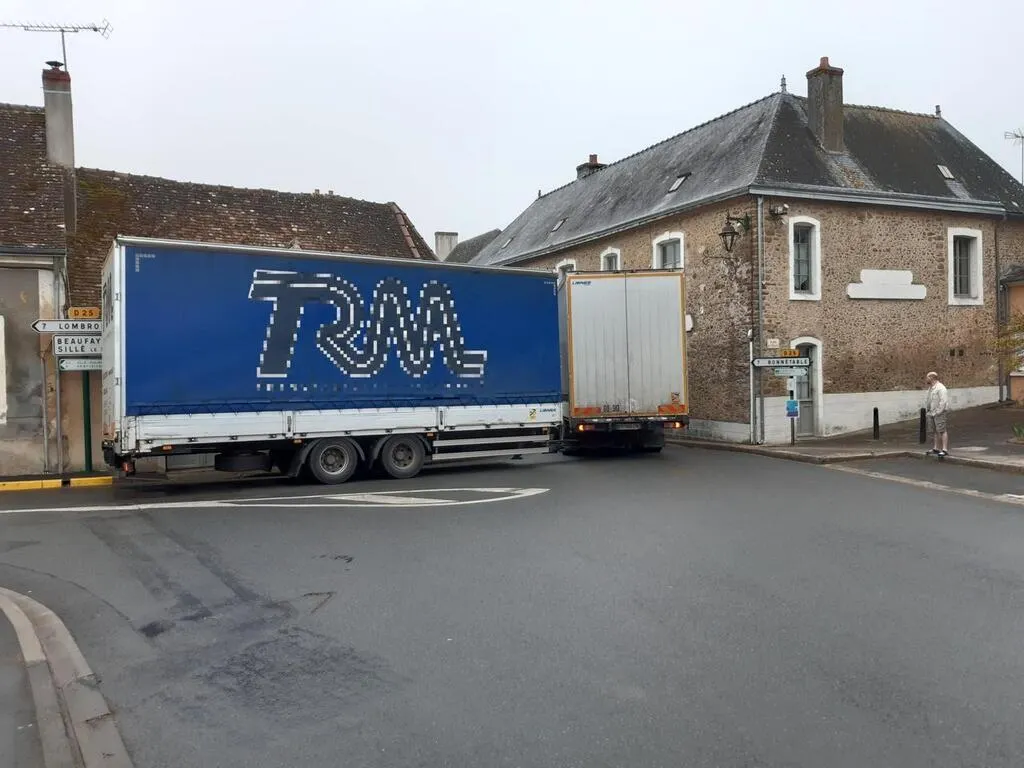 Sarthe. À Torcé-en-Vallée, un camion coincé dans un virage trop étroit... |