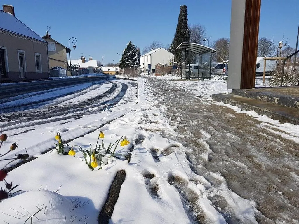Du côté de Beaumont-sur-Sarthe et de Connerré, dans le nord du département, aucun blocage de circulation n’est signalé. Seuls des congères se forment, et quelques accotements routiers sont aussi verglacés, toujours avec quelques centimètres de neige encore présents.