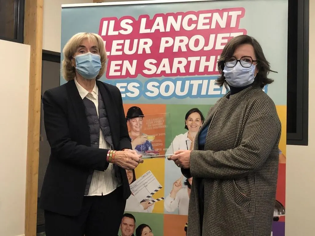 Pascale de Calonne récompensée pour sa campagne par la présidente de Sarthe Tourisme Véronique Rivron. Le Maine Libre