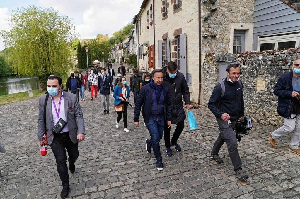 « Arrêtez, je vais devenir timide ! » Sourire éclatant, Stéphane Bern s’adresse à une vingtaine de personnes qui brandissent leurs téléphones portables, Grande-Rue, à Fresnay-sur-Sarthe, ce vendredi 30 avril 2021. L’animateur est là , avec son équipe de tournage, pour l’émission Le village préféré des Français, diffusée sur France 3.