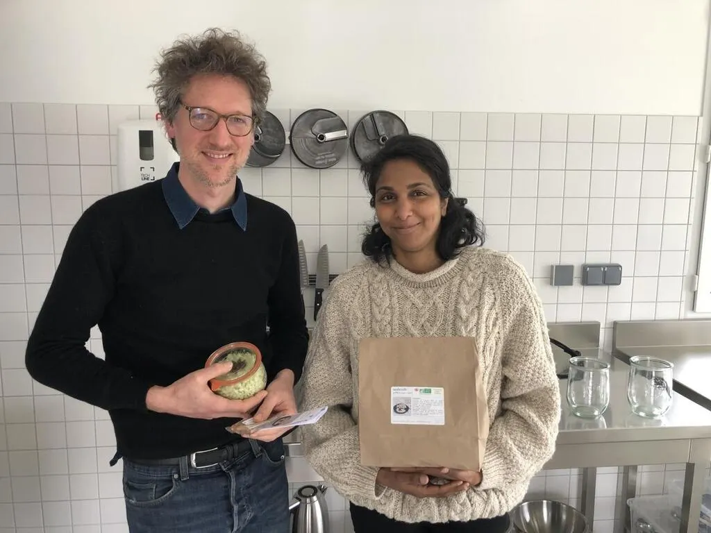 Basma Paradin et Pierre-Elie Boiton, fondateurs de Tambouille.bio, des kits de produits frais à cuisiner, ont installé leur atelier à Coudrecieux. © Le Maine Libre