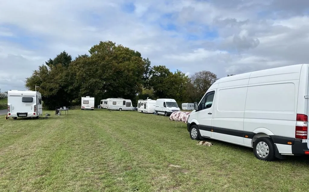 Près de la maison de santé de Villaines-sous-Malicorne (Sarthe), une douzaine de caravanes de gens du voyage sont installées depuis vendredi 13 octobre 2023. © Ouest-France
