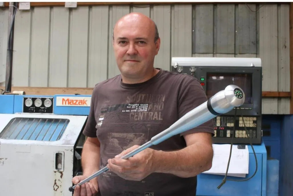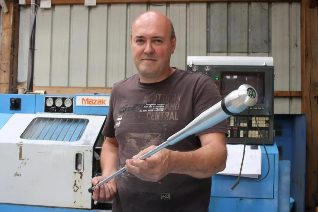 Bruno Lecomte, à la tête de Fimmo Usinage, a conçu une canne à champignons. © Ouest-France