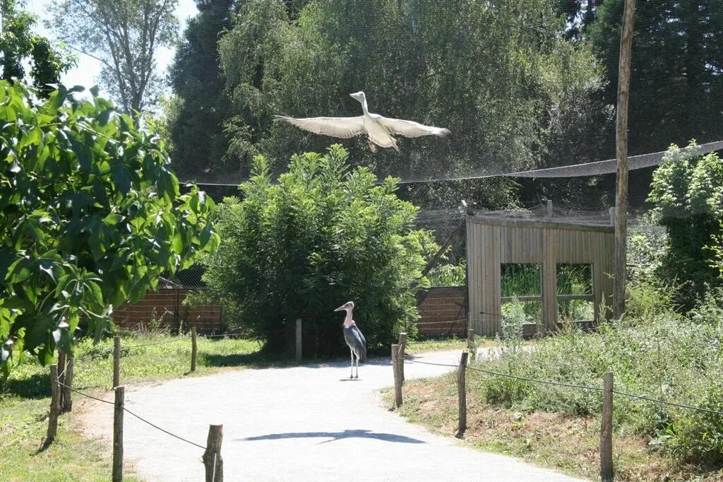 En hauteur, des cigognes blanches et des cigognes d’Abdim traversent la volière. Apparence chauve, long bec massif. Un peu plus loin, un marabout s’envole jusqu’au sommet d’un arbre. Il est facilement reconnaissable par son apparence imposante. Plus de 2,40 m d’envergure. Affublé d’un long bec multifonction, un couple de Bucorve d’Abyssinie est, lui, installé dans sa propre volière de 1 700 m2.