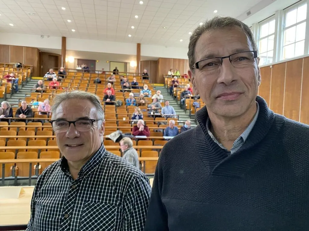 L’assemblée générale, à Rouillon dans la Sarthe, de l'Union syndicale apicole sarthoise (Usas) a tenu son assemblée générale. Avec Luc Rigal, son président (à gauche). Et Frank Alétru, président du Syndicat national de l'apiculture (SNA). © Ouest-France