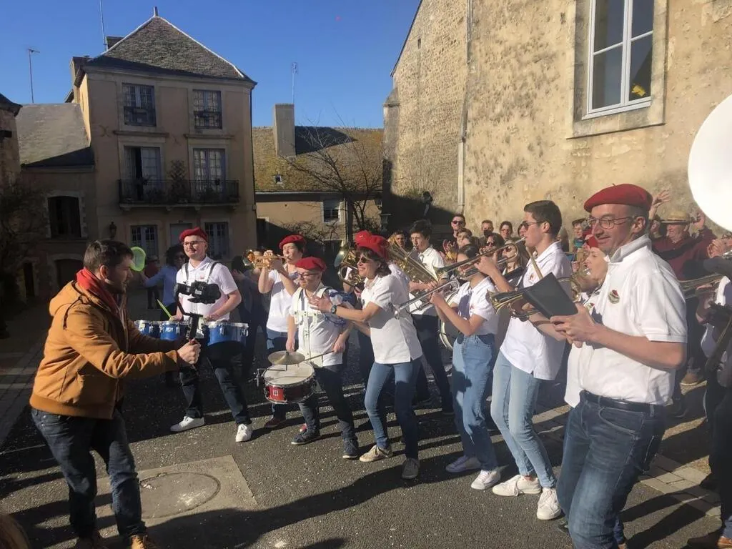 En février 2022, le groupe Sans Prétention tournait son clip dans le bourg de Chantenay-Villedieu. © Archives Le Maine Libre