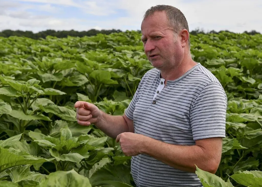 Spay, mercredi 7 juillet 2021. Après avoir craint le pire avec la sécheresse, Dominique Rousseau s’est réjoui de voir la pluie arriver. Il faudrait maintenant que le temps sec revienne pour que les moissons puissent avoir lieu dans de bonnes conditions. © Photo Le Maine Libre-Yvon LOUE