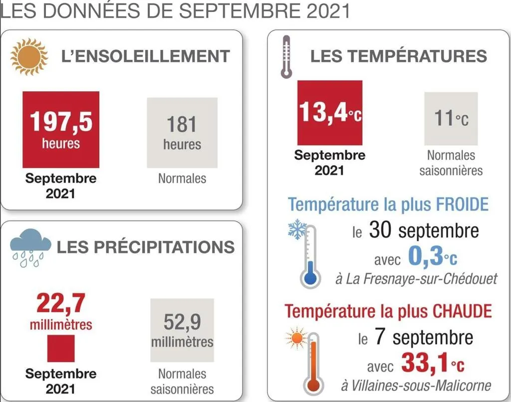Les données de la météo en Sarthe en septembre 2021 Infographie Le Maine Libre