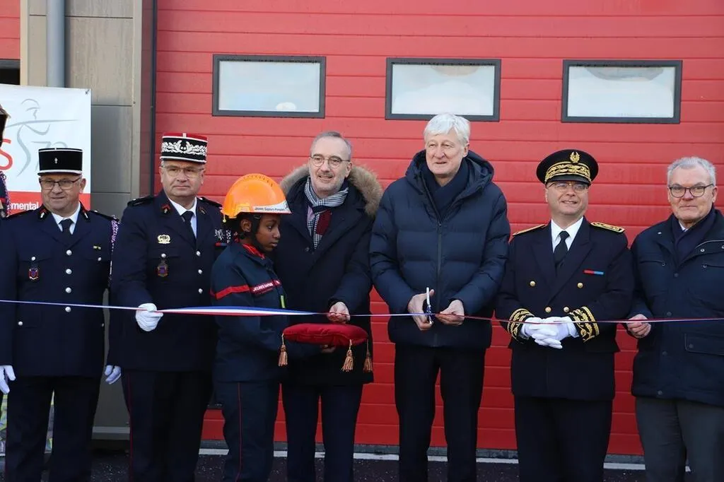 Élus, autorités et officiers du Service départemental d’incendie et de secours (Sdis) ont inauguré la nouvelle caserne de sapeurs-pompiers de Montmirail (Sarthe), ce samedi 21 janvier 2023. © Sdis 72