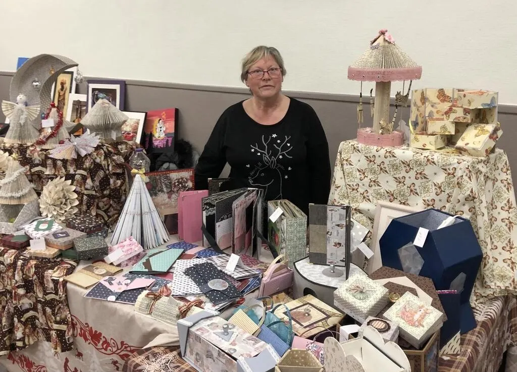 Les marchés de Noël permettent aux Sarthois, comme ici Annick Gautier, habitante de Malicorne, de montrer leur savoir-faire. © Le Maine Libre