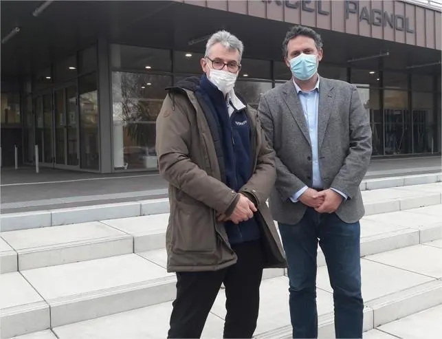 Dominique Bourneuf, patron de La Petite Auberge de Malicorne, et le principal du collège Marcel-Pagnol Emmanuel Laigneau à l’issue de leur rencontre. © Le Maine Libre