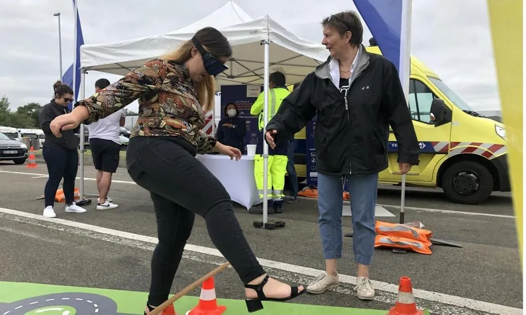 Villaines-la-Gonais, samedi 4 juillet 202. Inès, une jeune conductrice, a testé les ateliers de Vinci Autoroutes. © Le Maine Libre