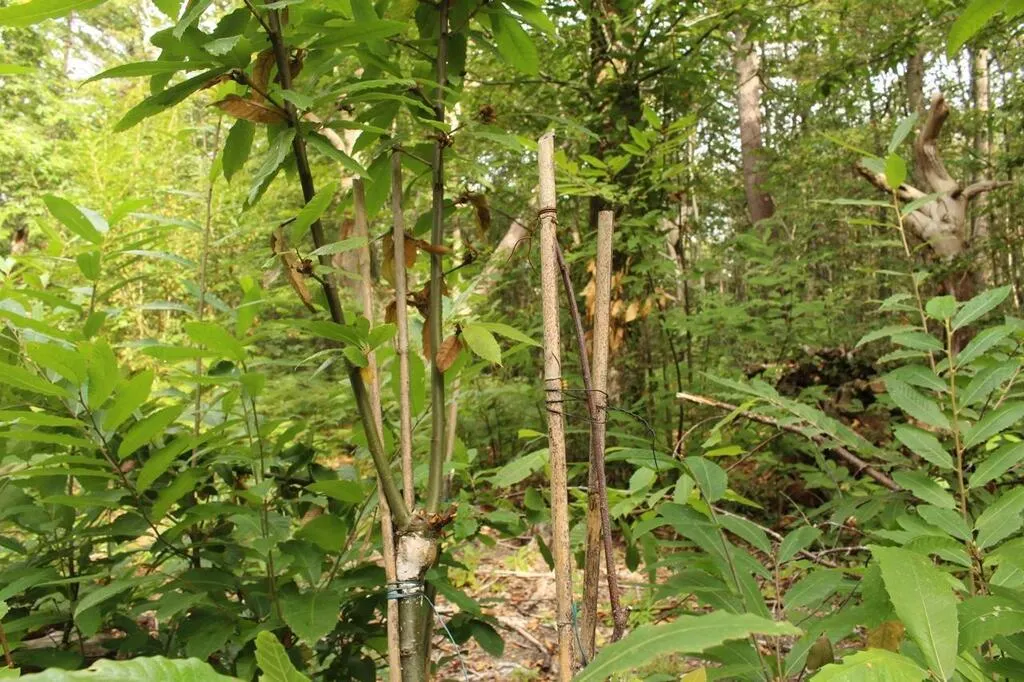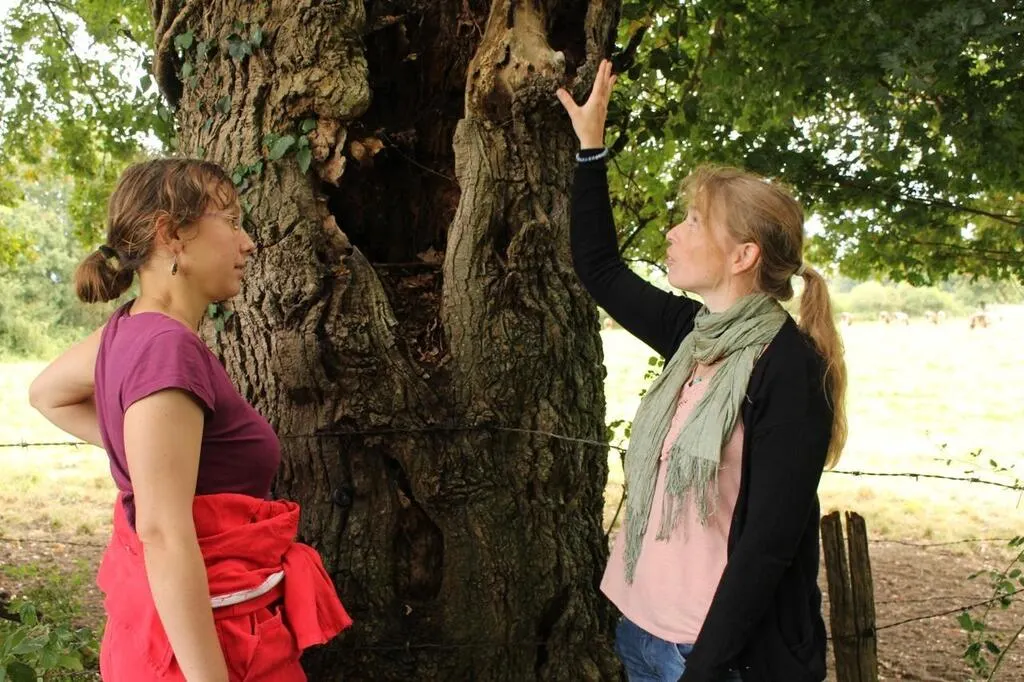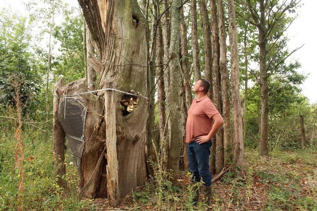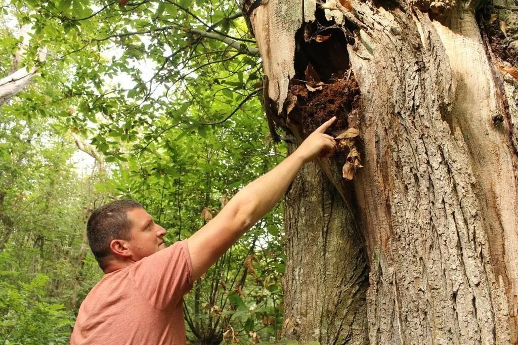 Lavernat, jeudi 9 septembre 2021. Anthony Belleteste montre une cavité à pique-prune dans un châtaignier de l’Espace naturel sensible des Guillaumeries. © Le Maine Libre