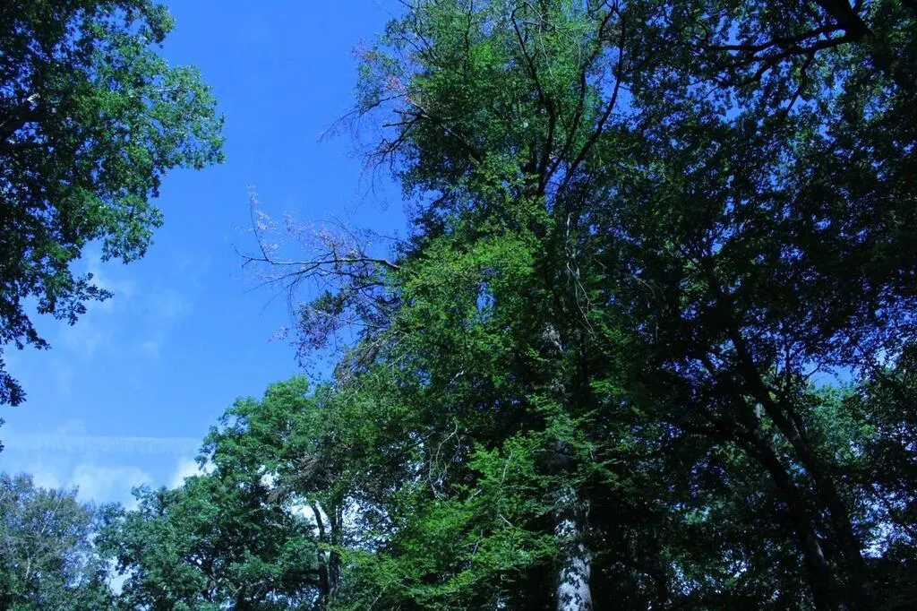 En levant la tête, on observe que la cime de quelques hêtres du rond de Peyrelongue, en forêt de Bercé dans le Sud-Sarthe, présente des feuilles desséchées, voire des ramifications à nu, signe ...