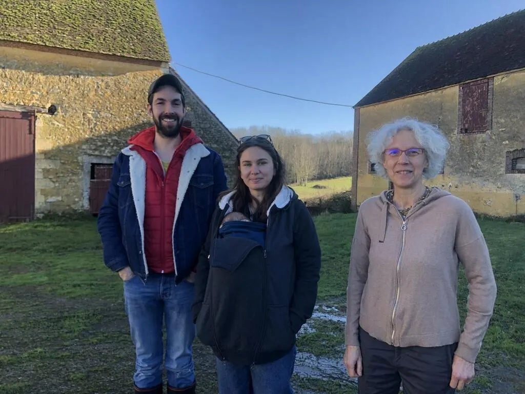 Ombeline Duval, Romain Pavisse et leur bébé, aux côtés de Chantal, au moment de la signature pour acquérir la propriété. © Archives Le Maine Libre