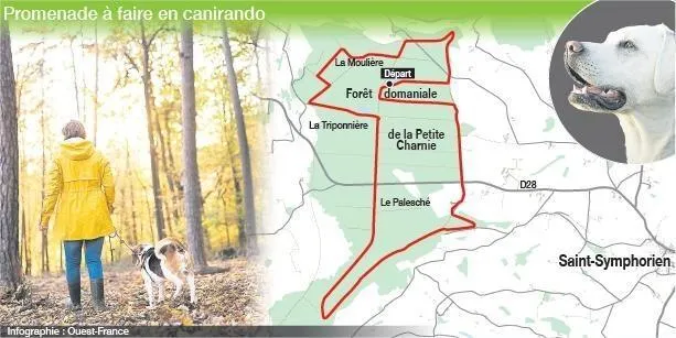 La cani-rando proposée est organisée dans la forêt domaniale de la Petite Charnie, à proximité immédiate de Saint-Symphorien (Sarthe).