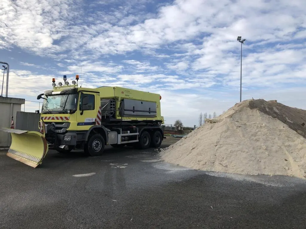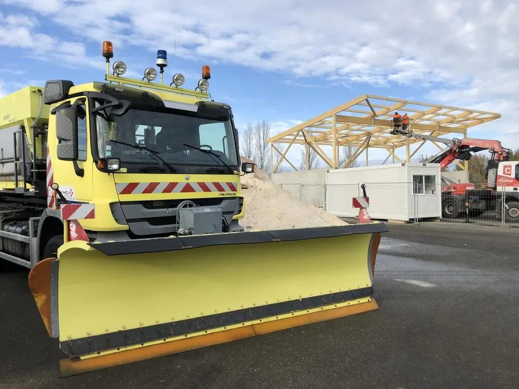 Ingrédient indispensable à la fréquentation de la chaussée malgré le gel et la neige, le sel est stocké en masse dans chaque centre d’exploitation. Au total, nous avons 2 000 tonnes de sel en permanence à disposition. Et nous renouvelons les stocks en continu pour maintenir ce tonnage moyen. Nous avons un contrat avec des fournisseurs de sel qui peuvent nous livrer sous 24 heures.