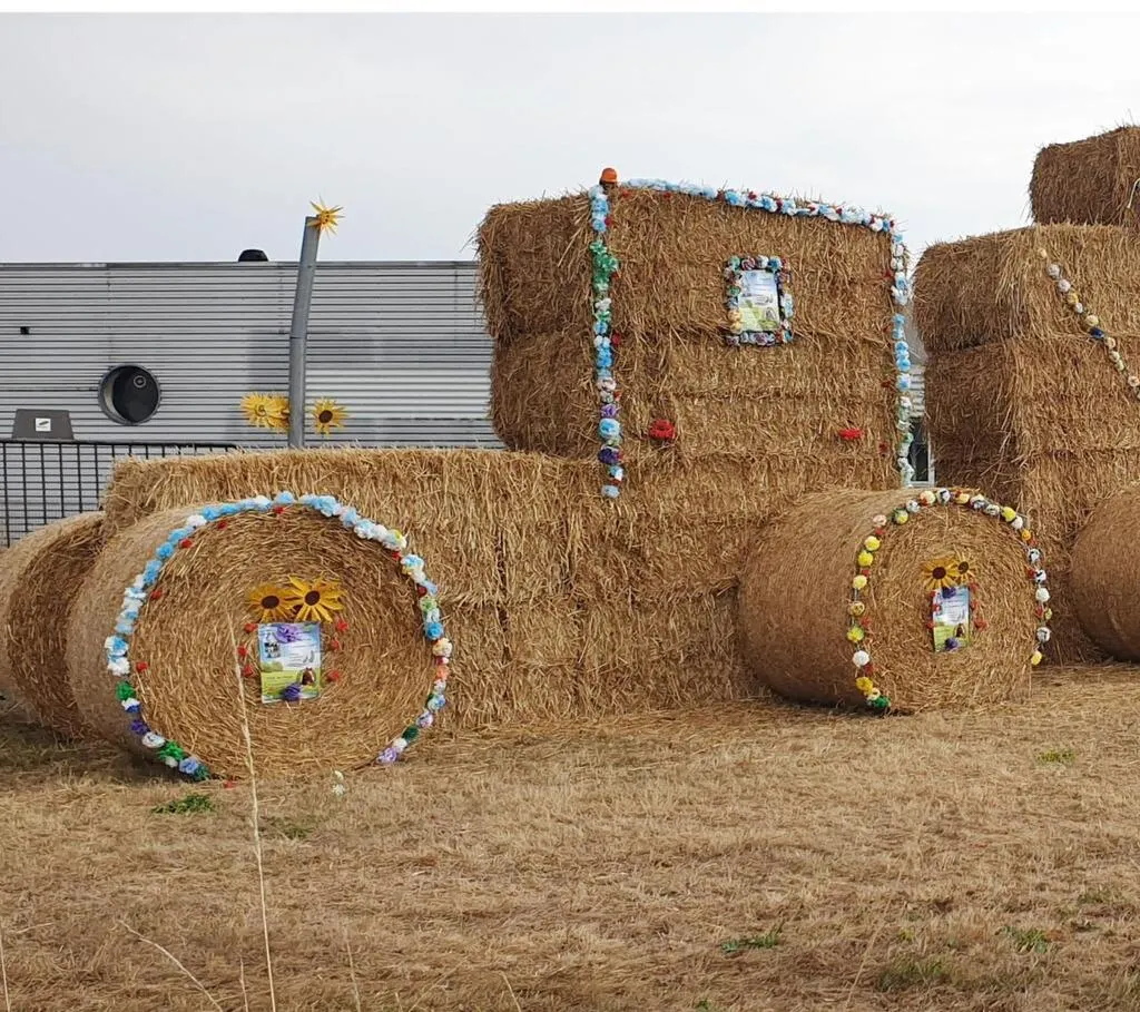 Deux tracteurs en paille ont pris place pour annoncer l’événement. © Ouest-France