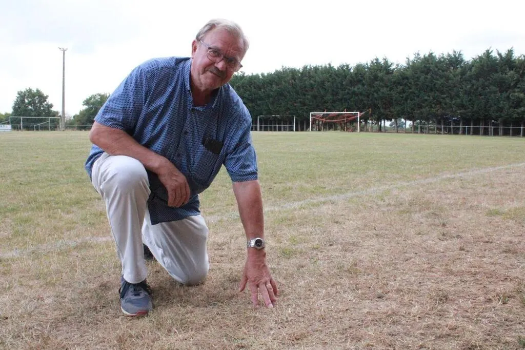 Gérard Coudray, président de l’AS Étival-lès-Le Mans, compte sur la pluie d’ici le 18 septembre et la reprise des championnats, pour reverdir les pelouses. © Ouest-France
