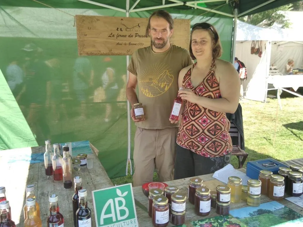 Jean-François et Virginie, installés à Assé-le-Boisne, lors du marché du terroir à Saint-Léonard-des-Bois. © Le Maine Libre
