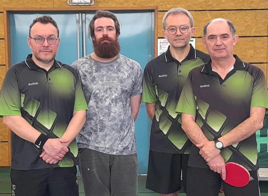 L’équipe 2 en D4 : Olivier Lefebvre, Samuel Prunier, David Poussier et Olivier Modat. © TTC du Pays de Sillé.
