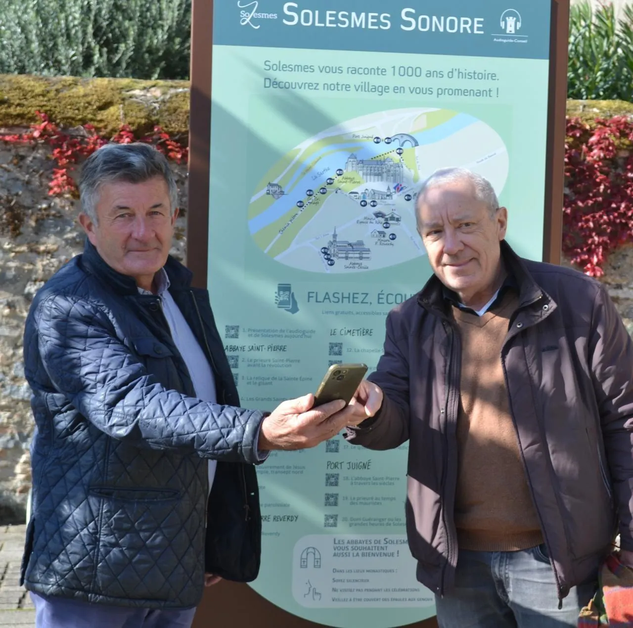 Depuis début août, Solesmes propose aux visiteurs de découvrir l’histoire du village grâce à une balade audio guidée. Un parcours de 29 commentaires à flasher avec son téléphone. Après deux mois et demi d’utilisation, Pascal Lelièvre, le maire, et Thierry Quantin, conseiller municipal, porteur du projet, annoncent :  En août, on a dénombré 526 visiteurs qui se sont connectés via les QR code sur les panneaux, en septembre 493 et à la date d’aujourd’hui, 10 octobre, 168.Â