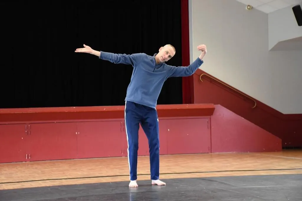 Sylvain Riéjou, danseur et chorégraphe sabolien, était en résidence à la salle des fêtes de Solesmes pour préparer son prochain spectacle : « Je badine avec l’amour ». © Le Maine Libre