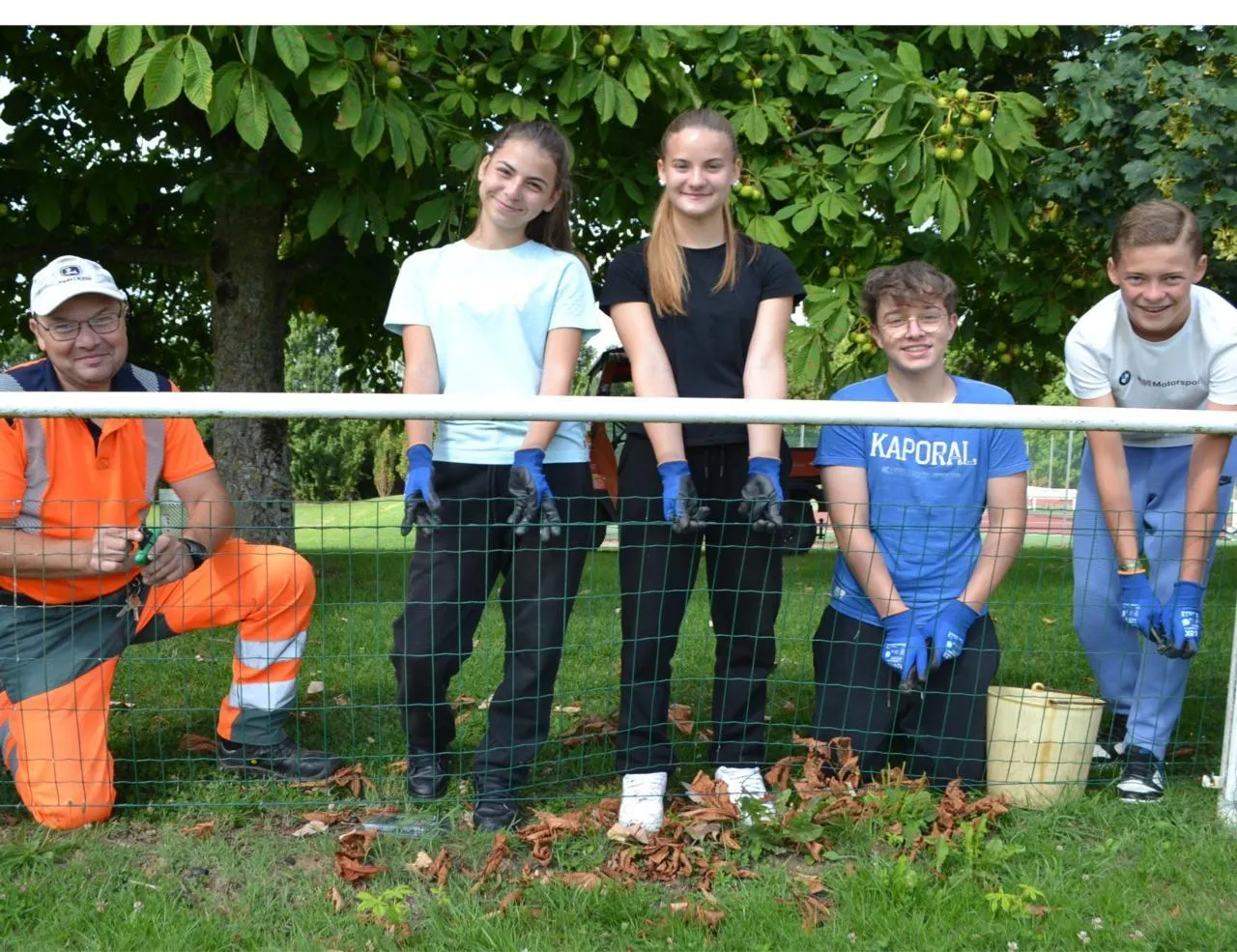 Mardi, Zohya, Jade, Énola, Louen, Robin et Tom, âgés de 14 à 16 ans, étaient à pied d’œuvre sur le stade de foot. « On dépose le grillage, on change les fils tendeurs et on rattache ensuite le grillage », explique Cyril Coutelle. « Un groupe ramasse les déchets verts après la taille », précise Daniel Leroy. « Et on permute les groupes. »